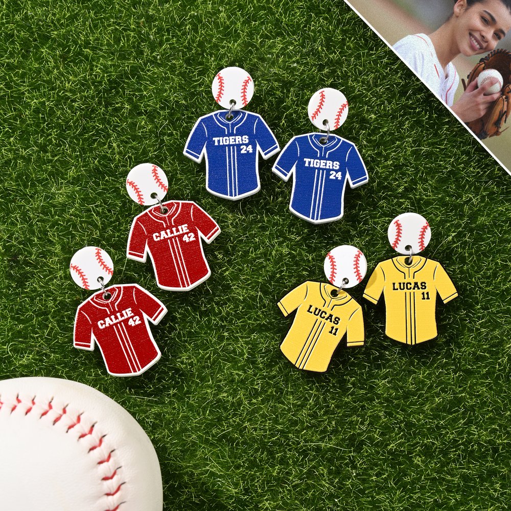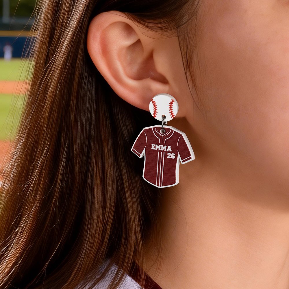 Personalized Baseball Jersey Earrings with Name and Number Game Day Birthday Gift for Baseball Lovers Baseball Mom