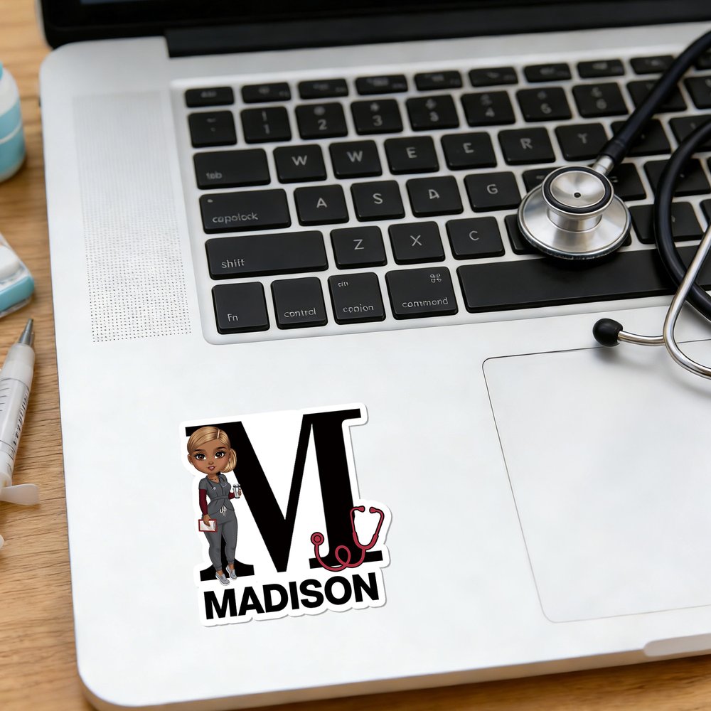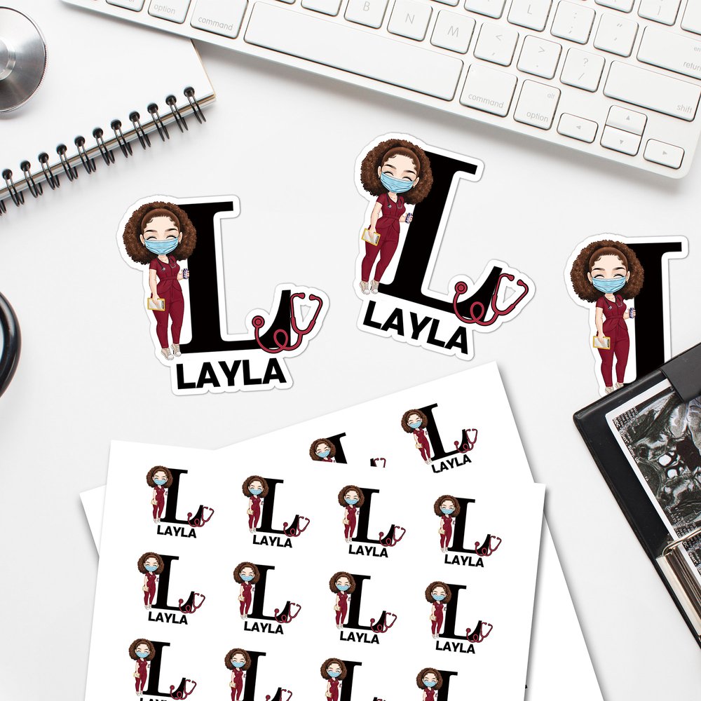 Personalized Cartoon Medical Character Set of 2 Waterproof Stickers Labels with Name and Initial Birthday Gift for Nurse Doctor