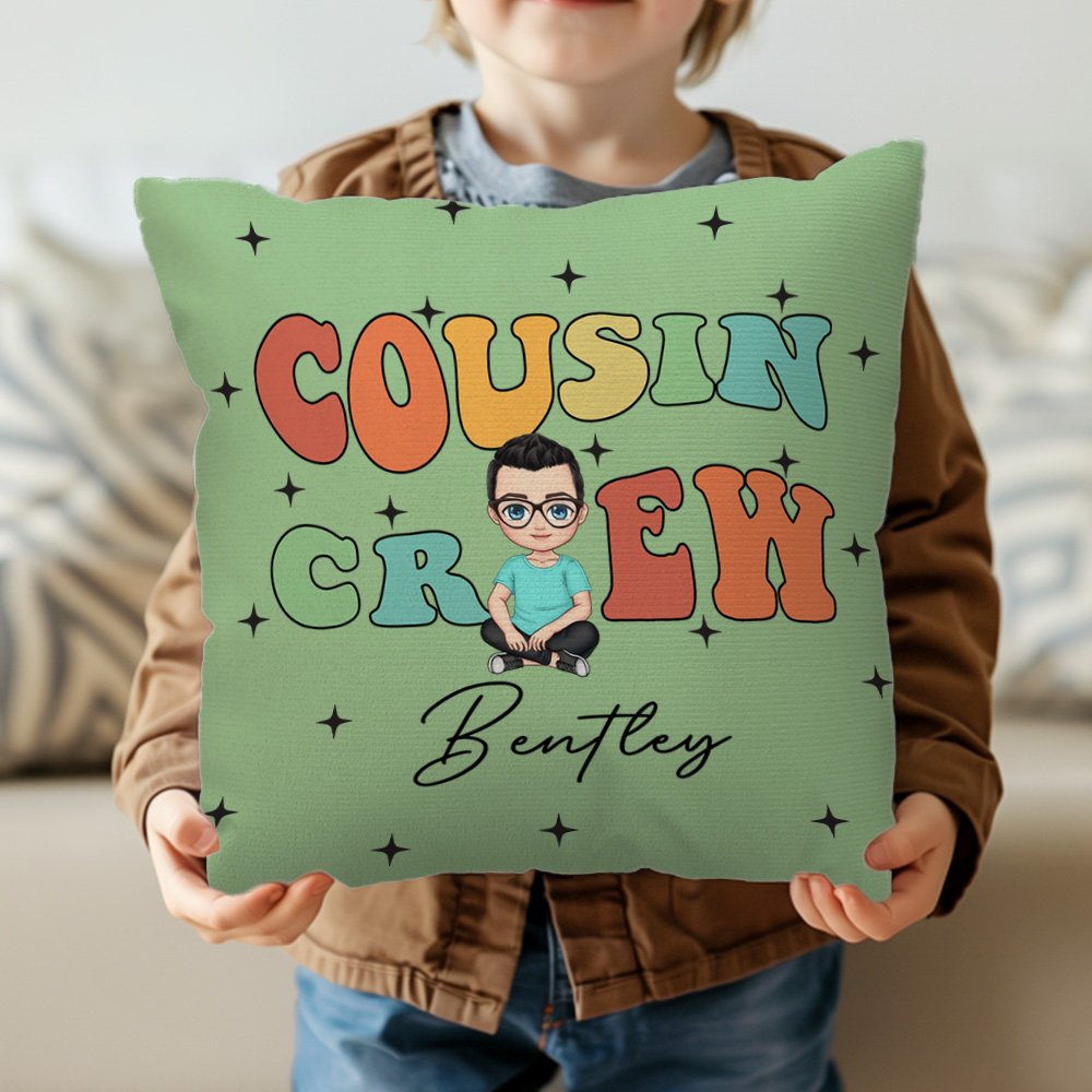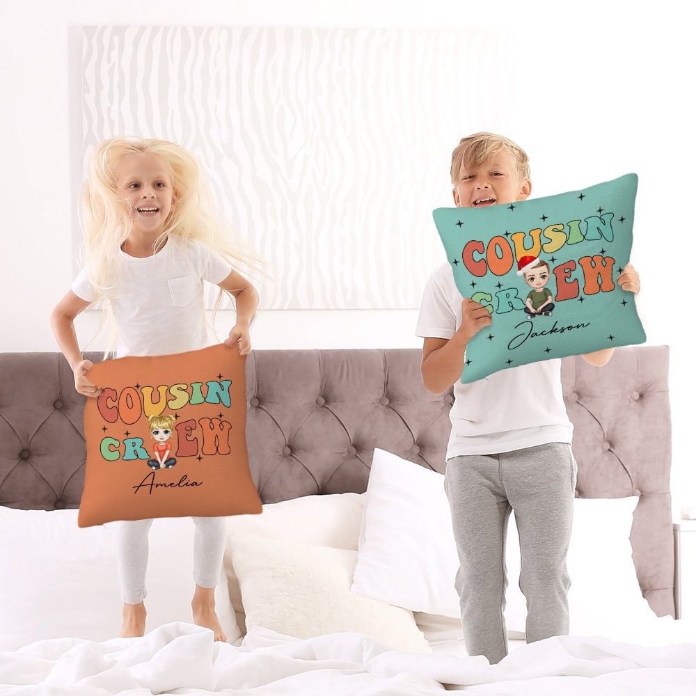 Personalized Cousin Crew Cartoon Character Soft Throw Pillow Cover with Name Home Decor Christmas Gift for Family