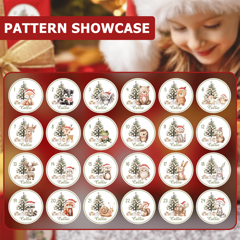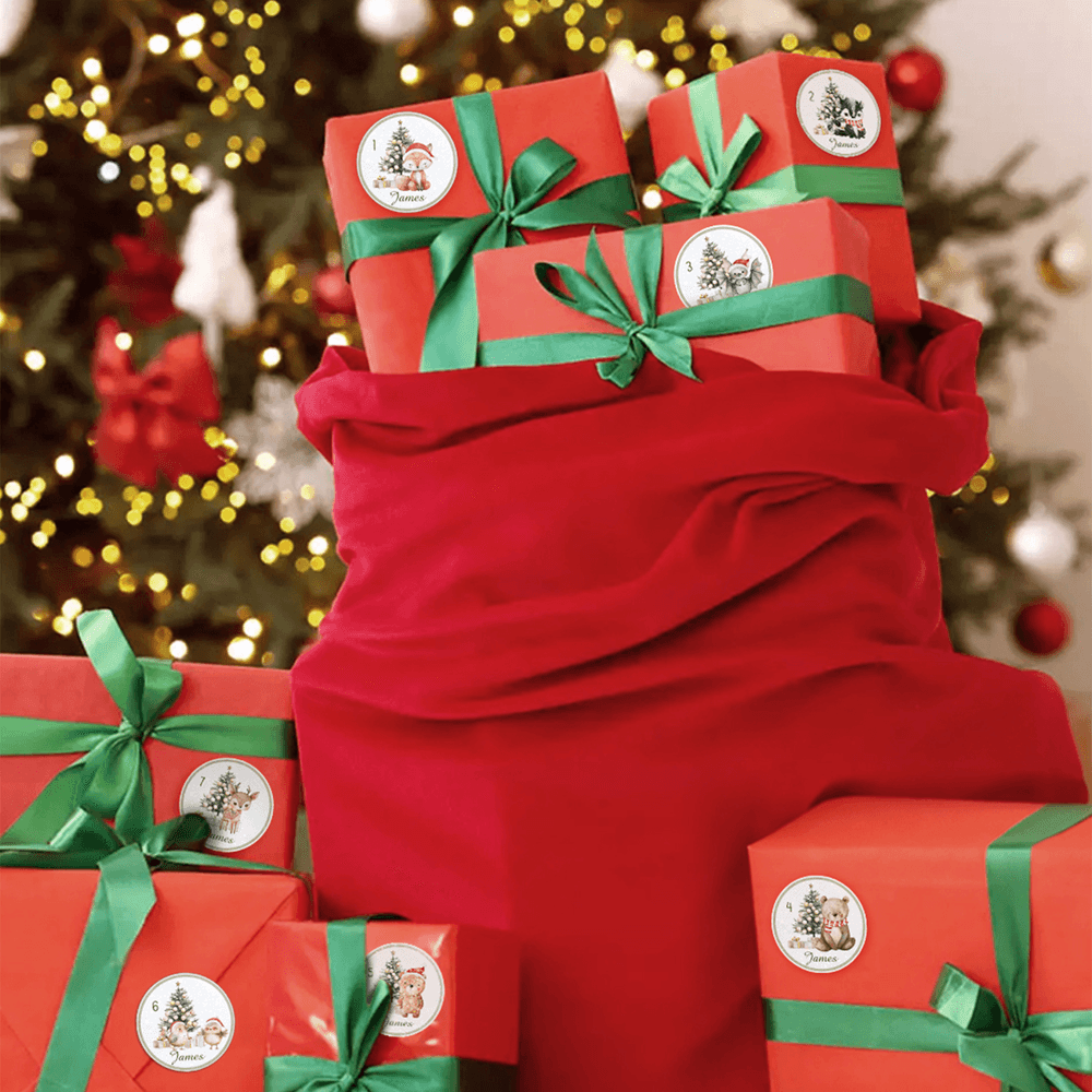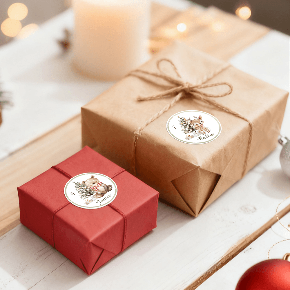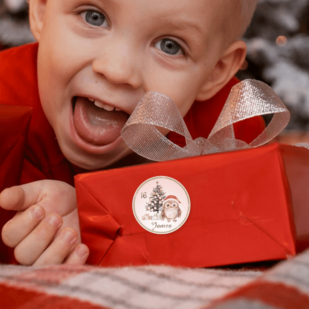 Combining classic festive symbols like Christmas trees and gifts, these countdown stickers feature personalized names, transforming each piece into a distinctive emblem of the season. They merge the excitement of counting down the days with a playful illustration style, sparking children’s holiday imagination while bringing creative warmth and delight to Christmas celebrations. Each A4 sheet contains 24 stickers.